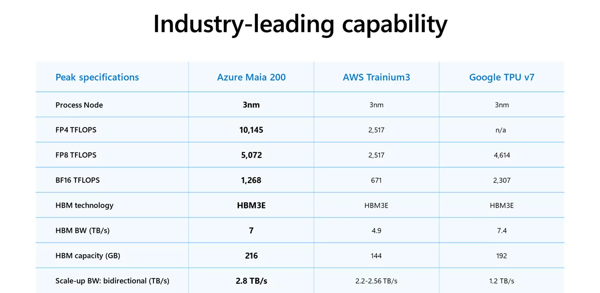Maia 200 производится по 3-нм техпроцессу TSMC и насчитывает более 140 миллиардов транзисторов. Архитектура чипа включает: