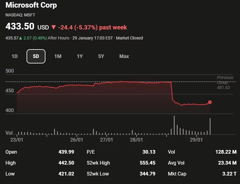 Microsoft пережила второе по величине однодневное падение акций в истории фондового рынка. За сутки рыночная капитализация компании упала на колоссальные $440 млрд. Этот обвал уступает лишь прошлогоднему падению капитализации NVIDIA, которое произошло на фоне новостей об эффективности китайской ИИ-модели DeepSeek.