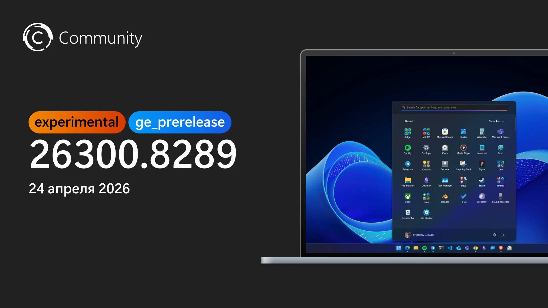 Полный номер сборки: 10.0.26300.8289.ge_prerelease_im.260421-1700.