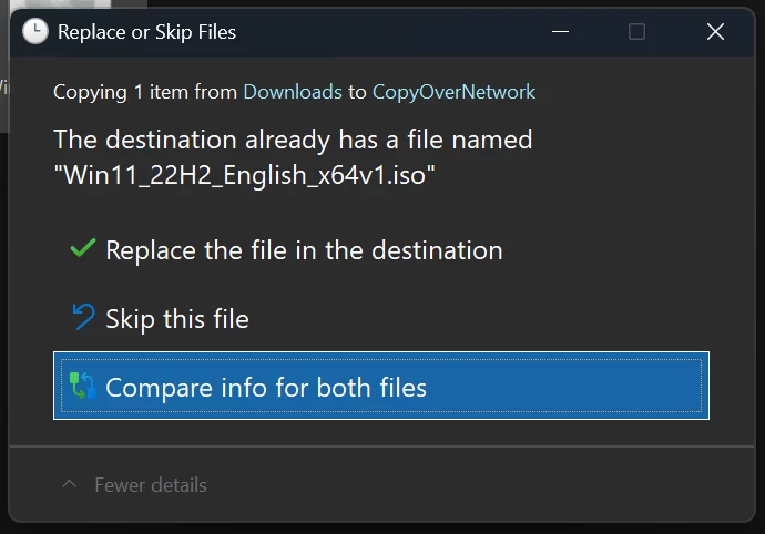 - Тёмная тема оформления. Microsoft улучшила тёмную тему в «Проводнике», применив её к ключевым диалоговым окнам, таким как копирование, перемещение и удаление. Теперь вы увидите единообразное отображение темной темы в следующих элементах: