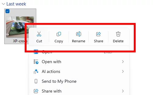 В контекстное меню «Проводника» добавлены ИИ-действия, чтобы вы могли быстро выполнить такие действия, как редактирование изображений или обобщение документов. Чтобы опробовать новшество, нажмите правой кнопкой мыши (или нажмите Shift + F10) по файлу в «Проводнике», и в контекстном меню вы обнаружите новый пункт «Действия ИИ» (AI Actions), под которым скрываются доступные действия для вашего файла.