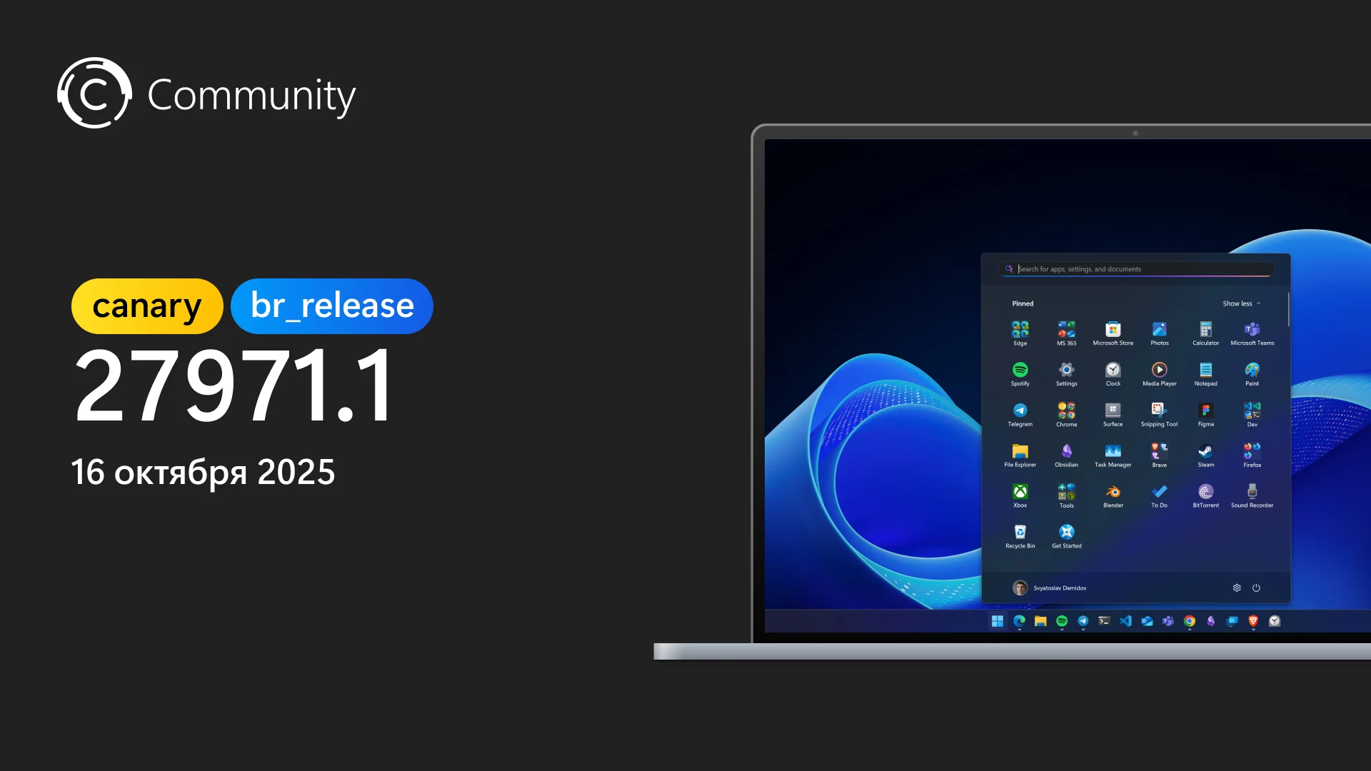 Добрый вечер, друзья! Microsoft выпустила новую предварительную сборку Windows 11 под номером 27971 для участников программы Windows Insider, использующих канал Canary.