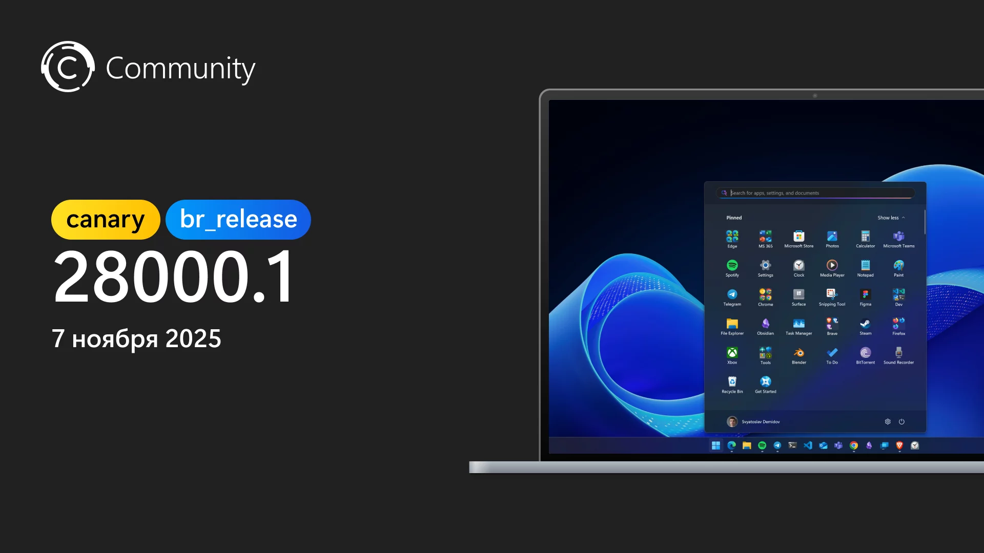 Microsoft выпустила новую предварительную сборку Windows 11 (версия 26H1) под номером 28000 для участников программы Windows Insider, использующих канал Canary.