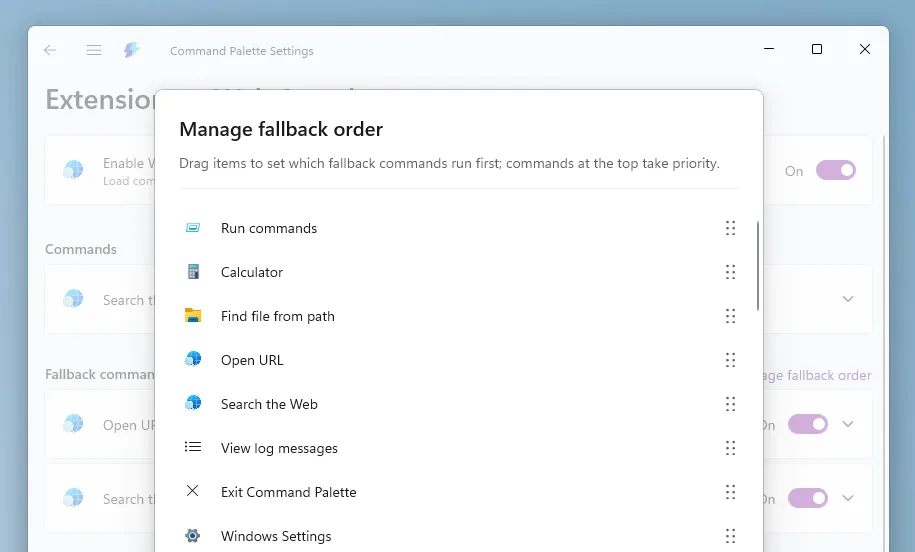 Чтобы у вас было больше контроля над порядком выдачи результатов поиска, разработчики добавили функцию резервного ранжирования. Вы можете управлять порядком ранжирования на странице настроек расширения, нажав «Управление порядком резервных действий» (Manage fallback order). Здесь вы можете переупорядочить команды, перетаскивая их в соответствии с вашими предпочтениями.