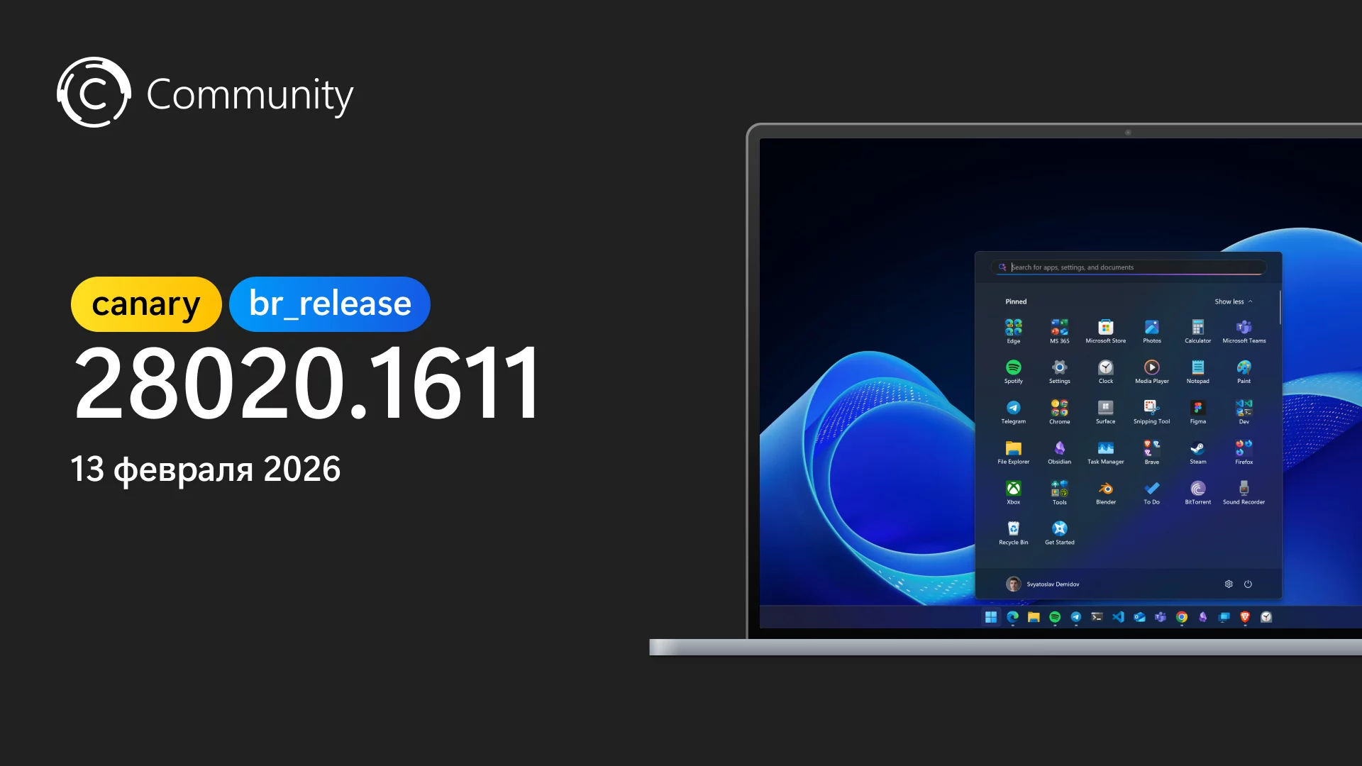 Microsoft выпустила новую предварительную сборку Windows 11 (версия 26H1) под номером 28020.1611 (KB5077221) для участников программы Windows Insider, использующих канал Canary.