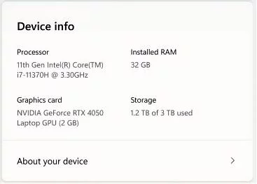 В разделе «Параметры» → «Система» → «О системе» ключевые сведения об оборудовании вновь отображаются в верхней части страницы для быстрого ознакомления. Это было сделано на основе отзывов пользователей.