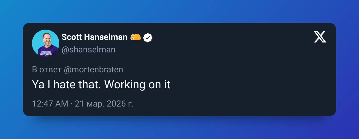 Известно, что Хансельман — не единственный сотрудник внутри компании, недовольный текущей политикой. Внутри Microsoft существует инициативная группа, которая активно добивается отказа от принудительного входа в учётную запись MSA.