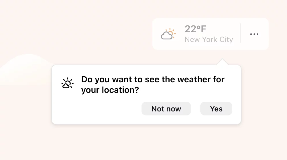 - Для пользователей в ЕС и некоторых других странах стал доступен процесс добровольного включения виджета погоды на новой вкладке. Пользователи могут самостоятельно решить, нужно ли разрешить браузеру определять местоположение или лучше указать его вручную.